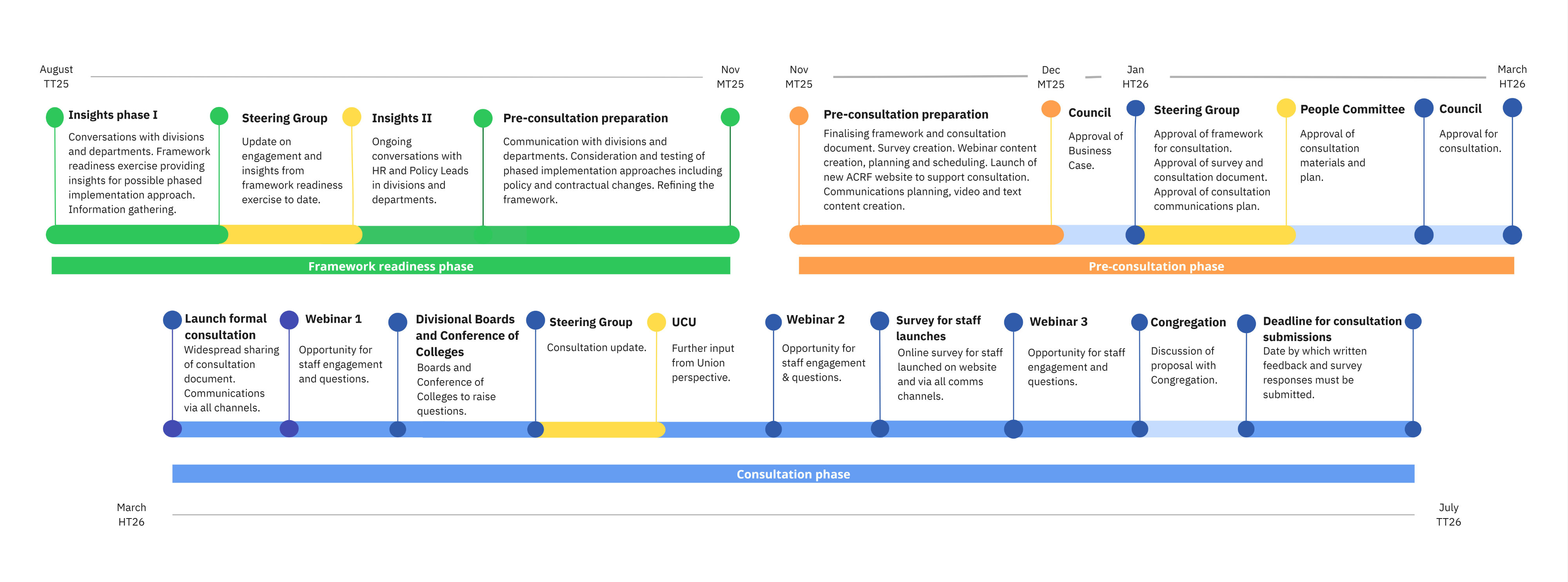 The ACRF programme timeframe (below) is ambitious, as the new framework touches on all elements of existing academic roles and related policies. We hope that with your continued input, we can produce a robust framework fit for implementation.
